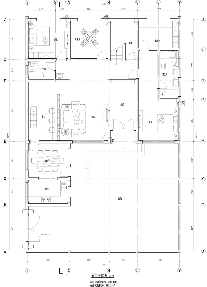 建筑總面積:550平米(不含入戶平臺、陽臺、露臺)