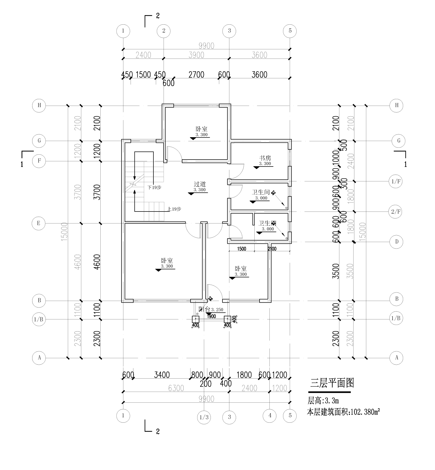 三層:3臥室、書(shū)房、陽(yáng)臺(tái)、衛(wèi)生間;
