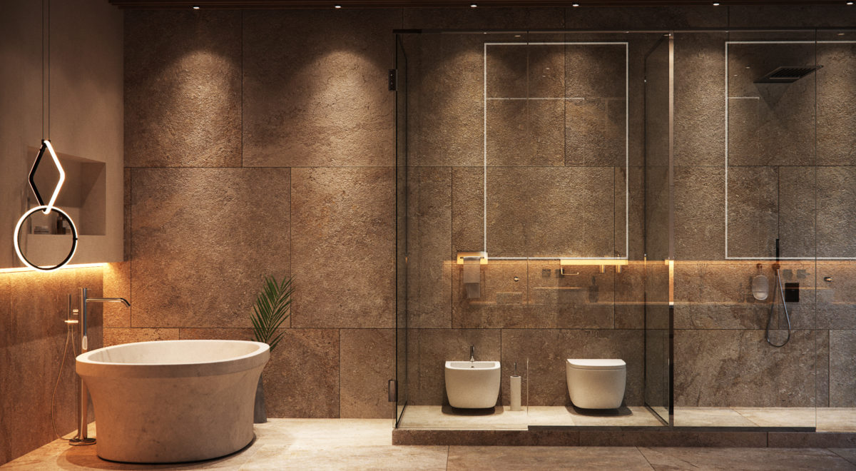 大幅面浴室瓷磚將使房間看起來更寬敞。