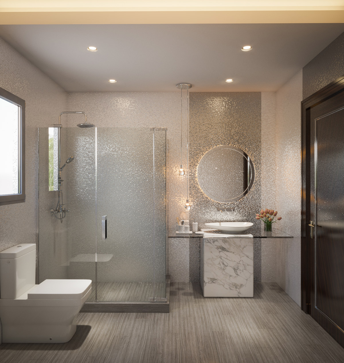 在潮濕的墻壁上添加一點微光。額外的光澤將賦予整個房間一種魅力。搭配一些大理石裝飾,引領(lǐng)潮流高端。