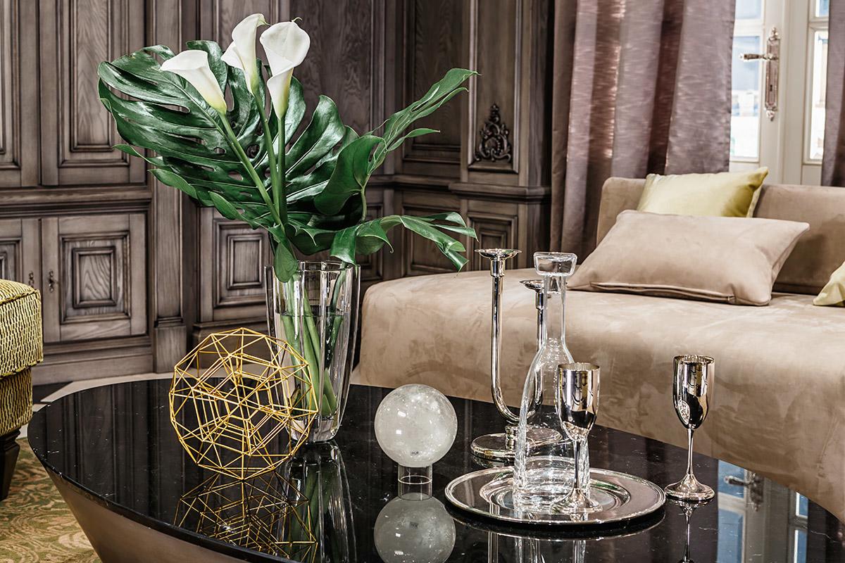 就連照明的選擇也向住宅的歷史主題致敬。這些玻璃吊燈的靈感來自世界各地重要歌劇院的著名吊燈。