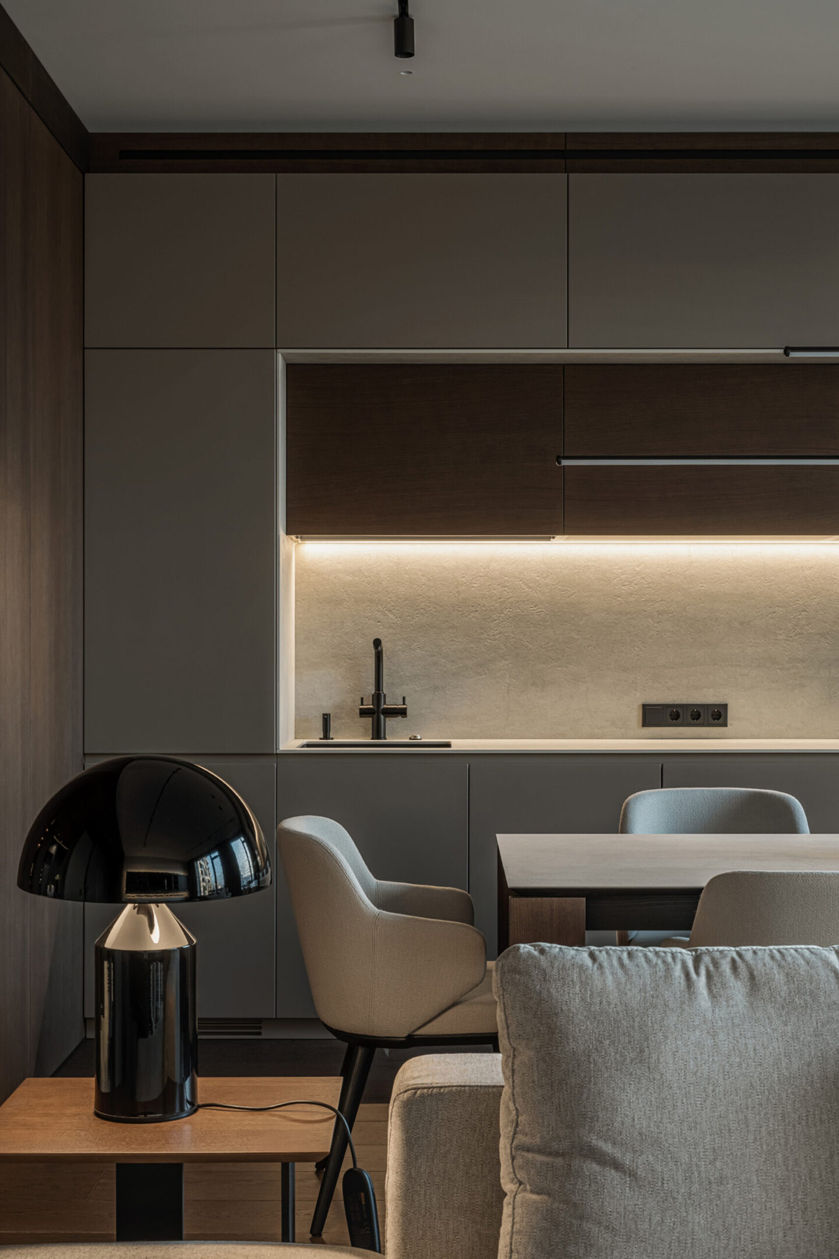 進(jìn)入這間位于基輔的時(shí)尚公寓后,我們會(huì)看到一個(gè)舒適的開放式起居空間,充滿熱情好客的魅力。布局寬敞實(shí)用,餐桌和廚房區(qū)位于 L 形沙發(fā)后面。