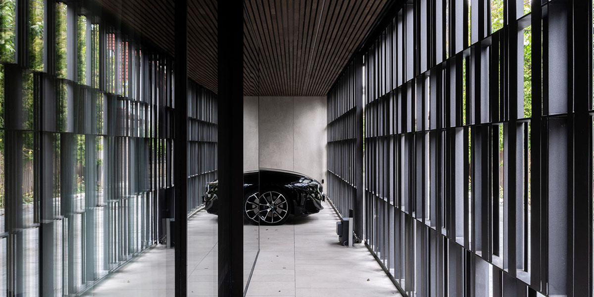 日光穿透金屬網(wǎng)格,進(jìn)入玻璃墻的家居設(shè)計(jì)。