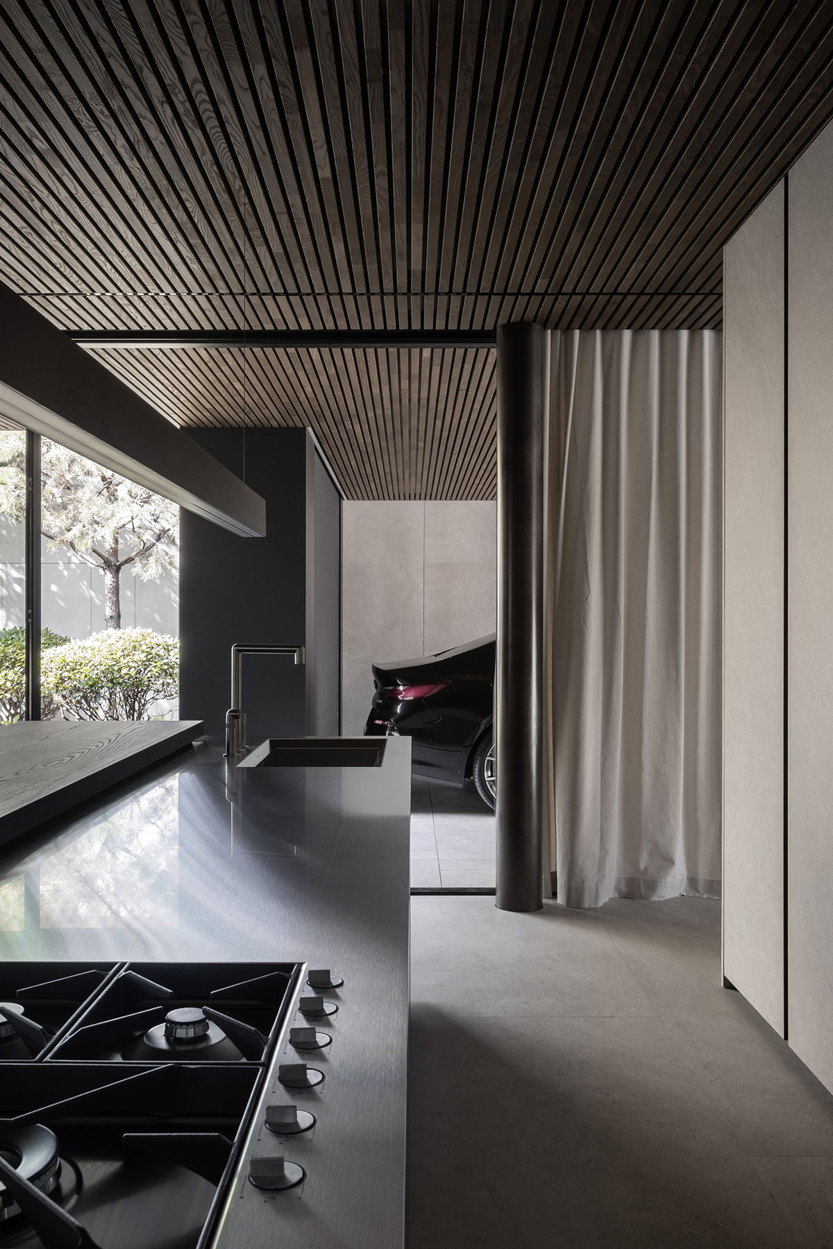 餐桌與中央廚房島臺相連,形成一個流線型的體量。